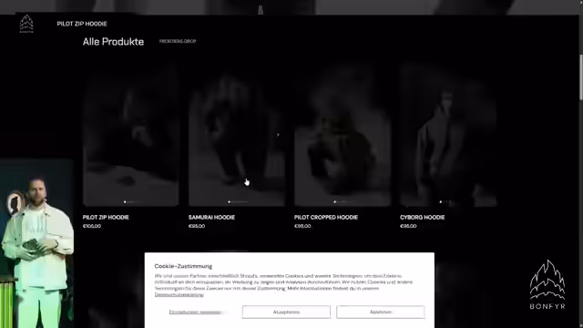03:19:56Der Streamer startet die offizielle Vorstellung seiner eigenen Modemarke 'Bonfire', deren Shop bereits seit einer halben Stunde zugänglich ist. Bei dem Launch handelt es sich um eine größtenteils hinter dem Stream entwickelte Aktion, die einen transparenten und qualitativ hochwertigen Produktionsprozess sowie faire Arbeitsbedingungen in der Textilherstellung anstrebt. Als Produktionspartner wurde 'HoodieHoo' aus Deutschland identifiziert, dessen transparente Informationen auf der Website einsehbar sind. Für den ersten Drop wurden insgesamt fünf T-Shirts, zwei Hoodies und ein Zipper in den Größen XS bis 5XL produziert.