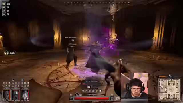 03:10:09Das Team gerät in einen Hinterhalt von zwei Druiden, die versuchen, sie in einem Raum einzusperren. Es gelingt jedoch, die Druiden zu besiegen, auch wenn einer der Gegner unerwartet 'Achilles'-Schaden verursacht und den Streamer unter Druck setzt. Nach dem Sieg wird sichergestellt, dass alle Teammitglieder wieder geheilt sind, bevor die Erkundung des Raumes fortgesetzt wird.