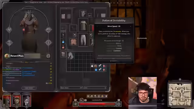 03:28:58Das Team sortiert das gesammelte Equipment. Viele Items werden als 'Trash' eingestuft oder aufgrund Platzmangels weggeworfen, was den Streamer frustriert. Gleichzeitig werden Tränke und andere nutzbare Gegenstände verteilt. Man unternimmt einen Versuch, einen 'Mob' zu eliminieren, was jedoch scheitert, da der Gegner zu stark ist und Teammitglieder sterben.