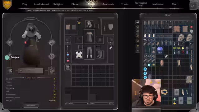 00:00:00Der Streamer und sein Team bereiten ihre Kits für den Multiplayer-Modus vor. Sie diskutieren den Bau von Blue Kits und einem Hybrid-Sorg-Build mit Fokus auf Movespeed, Magic Power und Magic Damage Bonus. Ein Spieler erwähnt Brave Hunter Pants und Grave Wolf Gloves als Teil seines Builds. Es folgt die Planung für gemeinsame Sessions: Sie laden Sun für später ein und erwägen Duos oder Trios in der Squire-Lobby. Gleichzeitig bereiten sie technische Aspekte vor, wie das Einladen von Spielern über Twitch und den Start eines gemeinsamen Chats, um die Koordination zu erleichtern.
