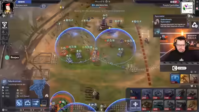 01:01:20Der Streamer beginnt nun im 2-gegen-2-Modus zu spielen und analysiert die spezifischen Techniken und synergischen Effekte, die in diesem Modus verfügbar sind. Er geht auf verschiedene Upgrades ein, wie zum Beispiel Overheat bei Rhinos und die mit dem Fortschritt wachsende Reichweite bei Balls, und wie diese im taktischen Kontext genutzt werden können.