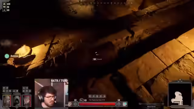 02:39:06Nach einem erfolgreichen Kampf gegen den Barbaren wird festgestellt, dass der Boss noch unberührt im Raum steht. Ein Ranger wird gelootet, der ein blaues Frost-Amulett mit maximaler Gesundheit und 200 Pfeilen bei sich trägt. Es wird überlegt, ob man den Boss schnell erledigen soll, da die Lobby anscheinend leer ist. Ein gefundener Stärke-Ring wird als potenziell wertvoll für den Joker angesehen. Es wird kurz diskutiert, wie ärgerlich es ist, wenn während eines Kampfes der Bosskampf komisch verbuggt. Das Inventar füllt sich schnell mit Heilgegenständen, was die Notwendigkeit weiterer Heilung in Frage stellt. Es wird eine Katze für schnellere Schüsse ausgewählt. Das Spiel wird als sehr dunkel empfunden, was die Sicht beeinträchtigt. Ein Pickpocket wird erwähnt, aber nicht weiter verfolgt. Ein Warlock bewegt sich nach links, während ein Ranger sich in einen Kampf verwickelt. Es wird beschlossen, ein Gefängnis zu öffnen, um einen Vorteil zu erhalten. Ein Rogue schließt eine Tür, was zu Überlegungen über das Clearen von Mobs führt. Ein Ring mit zwei Dex und True Physical Damage wird als wertvoll für Lin identifiziert.