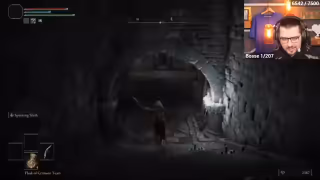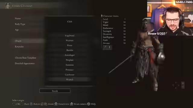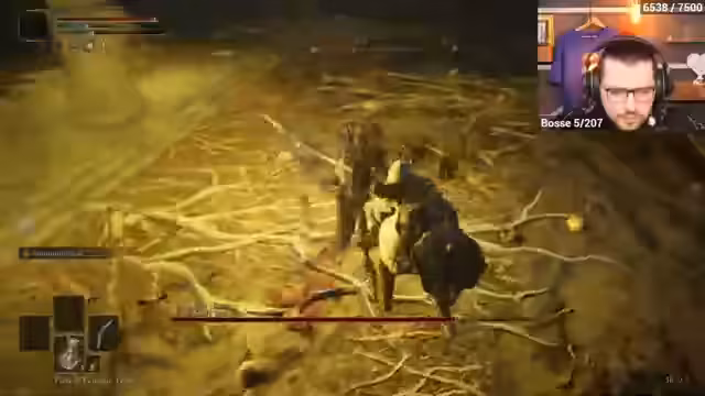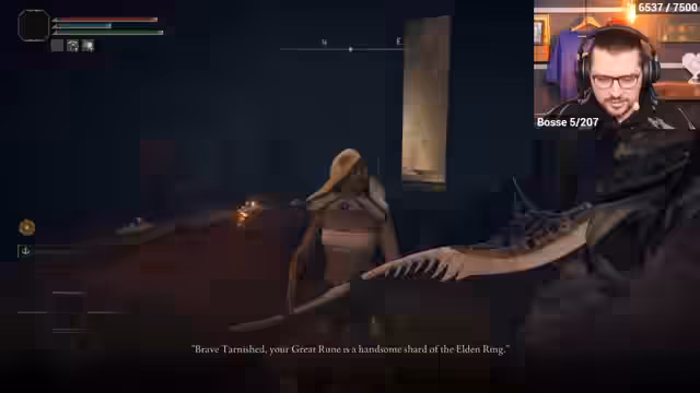 00:30:09Der eigentliche Elden Ring Randomizer-Lauf startet. Charakterklasse und Ausrüstung werden zufällig generiert, was zu einer ungewöhnlichen Startkonfiguration führt. Der Streamer erkundet die nun veränderte Welt von Limgrave, in der nicht nur Items, sondern auch Gegner und Bosse getauscht sind. Besonders hervorgehoben werden die Begegnungen mit DLC-Gegnern, die in frühen Gebieten auftauchen, was zu einer unerwartet hohen Herausforderung führt.