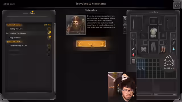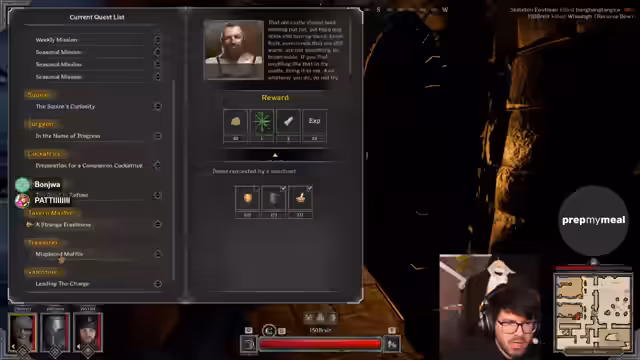 05:39:59Der Streamer befasst sich intensiv mit dem Quest-System und hat für seinen Squire-Charakter neue Aufgaben erhalten, wie das Finden von Common-Armor und Common-Weapon. Es werden die Mechaniken von Gold- und Silbercoins erklärt, die sich bis zu 25 bzw. 30 stapeln können. Gleichzeitig wird das Phänomen des wiederholten Droppens von Capes thematisiert, was mit dem 'Dungeon Recovery'-System zusammenhängt und als ärgerlich empfunden wird.