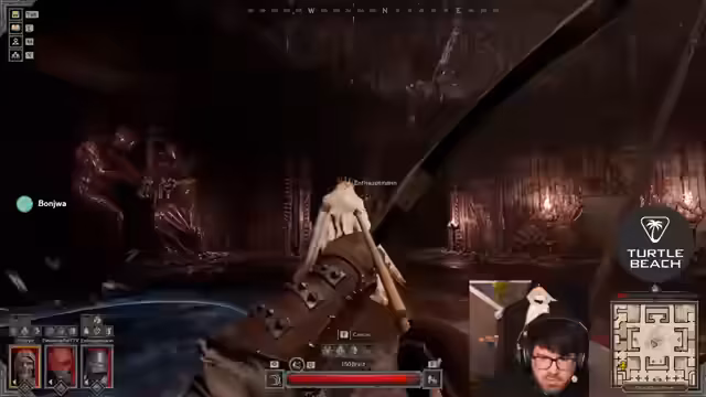 08:33:36Der Streamer beginnt einen Bosskampf, wobei er sich über die geringere Reichweite seines Zwerges im Vergleich zu anderen Spielern ärgert. Während des Kampfes stellt er fest, dass sein Bogen von geringer Qualität ist und erkundet alternative Waffen wie einen Speer. Das Inventar füllt sich rapide mit Gold, und der Streamer diskutiert die strategische Notwendigkeit, Ressourcen wie Heilung, Pfeile und Lagerfeuer für den bevorstehenden Kampf mitzunehmen.