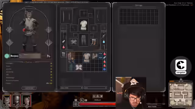 09:22:42Es gibt eine Diskussion über den Mangel an Warmaul für den Streamer, was seinen Build als Zwerg beeinträchtigt. Er bittet um Hilfe, eine solche Waffe zu finden, und erklärt die Notwendigkeit, eine spezifische Waffe für sein Spielgefühl zu haben. Gleichzeitig wird das Inventarproblem angesprochen; er versucht, Platz zu schaffen, indem er weniger wertvolle Gegenstände wie eine blaue 'Spellbook' mit 'Magical Healing' aufgibt, um Platz für kampfentscheidendere Ausrüstung zu machen.