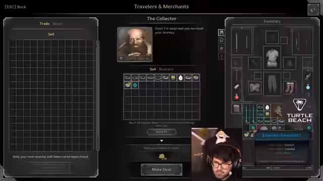 03:57:38Nachdem das Team eine Vielzahl an Ressourcen und Rüstungsteilen gesammelt hat, wird eine strategische Entscheidung getroffen. Man konzentriert sich darauf, High-Roller-Ausrüstung zu farmen, indem man alle gefundenen Teile bis auf ein Set verkauft. Gleichzeitig müssen die Spieler Quests weiterführen, um neue Fähigkeiten zu freischalten, wie das Töten eines Revenants, um den Squire-Rang zu erreichen. Der Streamer analysiert zudem seine Ausrüstung und rollt Attribute auf, um seinen Schadensoutput zu maximieren.