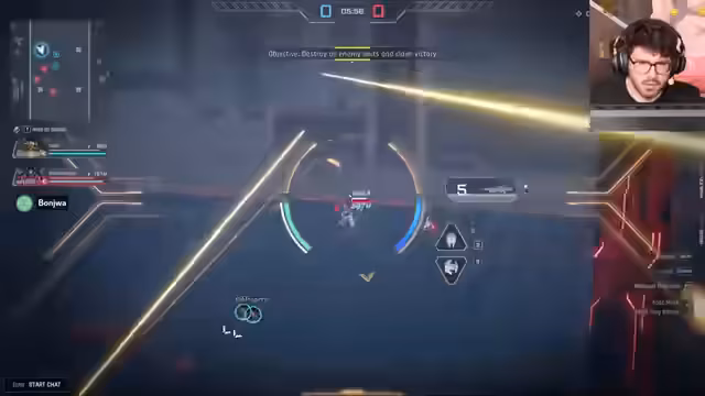 02:01:21Der Stream beginnt mit einer dynamischen Kampfszene. Matteo und sein Team fokussieren gezielt gegnerische Einheiten, um sie auszuschalten. Er demonstriert seine Strategie, mit dem Auto-Aim-Feature gezielt Gegner zu treffen, die sich nicht bewegen. Er eliminiert zunächst den Aquila-Sniper, dann den Hurricane, und anschließend den Falcon, was zu mehreren "Nice"-Reaktionen im Chat führt. Dabei wird deutlich, dass das Zusammenspiel der Teammitglieder und das zielgerichtete Ausschalten von Schlüsselfiguren entscheidend ist.