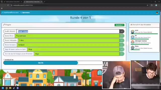 03:44:18Das Spiel Stadt am Fluss beginnt, und die Teilnehmer müssen in verschiedenen Kategorien Wörter finden, die mit einem vorgegebenen Buchstaben beginnen. Es kommt zu hitzigen Diskussionen über die Gültigkeit von Antworten, besonders bei Begriffen wie 'Nassrasierer' oder 'Boomer-Berufe'. Dabei werden oft externe Quellen wie ChatGPT hinzugezogen, um umstrittene Entscheidungen zu fällen. Punktabzüge und Kreativpunkte führen zu weiteren Spannungen und unterhaltsamen Auseinandersetzungen unter den Teilnehmern.