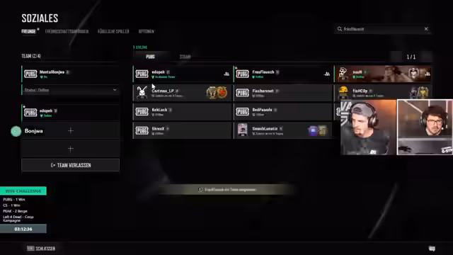 09:06:02Am Anfang des Streams bereiten sich die Streamer auf eine Runde PUBG vor. Es kommt zu technischen Schwierigkeiten, insbesondere bei den Steuerungseinstellungen, bei denen ein Spieler das Springen nicht nutzen kann. Nach dem Feststellen, dass dies an falschen Tastenbelegungen liegt, wird ein Reset der Steuerung auf die Standardwerte empfohlen. Dies geschieht, um den Grund für die eingeschränkte Beweglichkeit, die sich wie bei einem 'Rentner' anfühlt, zu beheben. Die Runde startet in einer kleinen Lobby, was auf Bot-Gegner hindeutet, was von den Spielern als gute Gewinnchance gesehen wird.