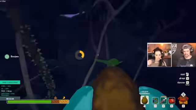 12:32:05Der Stream wird durch mehrere unerwartete Ereignisse und Spielerelemente unterbrochen, die die Spieler in schwierige Situationen bringen. Spieler werden von Zecken angegriffen, was kontinuierlichen Schaden und Gift verursacht. Eine weitere Bedrohung sind Giftpflanzen und Dornen, die das Vorankommen erschweren. Besonders der Verzehr eines sogenannten 'Lolli' führt zu starken visuellen Verzerrungen und der Nebenwirkung von Schlafgift. Die Spieler müssen lernen, mit diesen unerwarteten Mechaniken umzugehen und sich gegenseitig aus Gefahrenlagen zu retten.