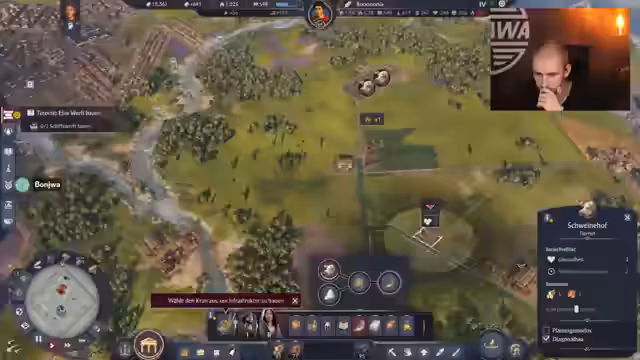 04:22:27Der Streamer berichtet über einen Pestausbruch in seinem Spiel und muss Olivenpressen bauen, um die Situation zu kontrollieren. Er versucht, seine Ressourcen optimal zu nutzen, indem er Beton und weitere Materialien produziert. Dabei stellt er fest, dass er mehr Beton benötigt, als er zunächst geplant hatte. Der Streamer zeigt Frustration über NPCs, die rebellieren und keine Waren haben, was seine Pläne durchkreuzt. Er erkundet Weihnachtsblaupausen und den Planungsmodus, um seine Strategie anzupassen.