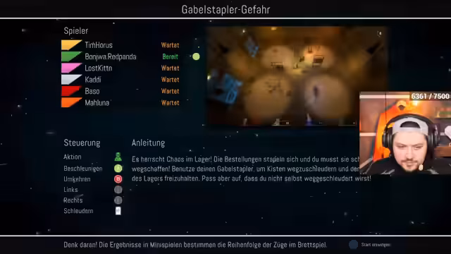 01:15:21Der Stream beginnt mit intensivem Gameplay, bei dem die Teilnehmer verschiedene Herausforderungen meistern. Es geht um strategisches Vorgehen in einem Spiel mit Schlüsselsammlung und Boxkämpfen. Leon äußert seine Frustration über Situationen, in denen er im Spiel stecken bleibt oder wichtige Gegenstände verliert. Auch Minispiele wie Pong und ein Parcours in den Wolken werden gespielt, bei denen die Spieler um Punkte kämpfen und sich gegenseitig behindern.
