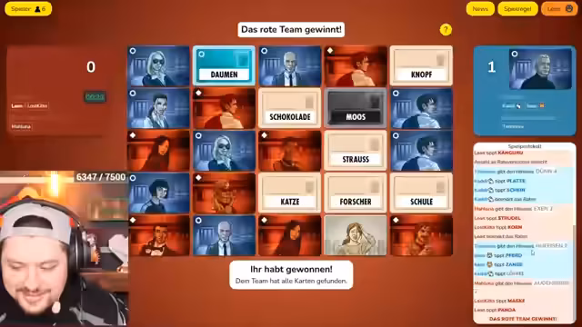 03:31:23Die Streamer diskutieren über verschiedene Wörter und ihre Verbindungen im Rahmen eines Spiels. Es gibt Diskussionen über Begriffe wie 'China', 'Bein', 'Mast' und 'Lager'. Die Streamer versuchen, Muster und Verbindungen zu erkennen, während sie Tipps und Vorschläge austauschen. Die Atmosphäre ist enthusiastisch, mit humorvollen Einwürfen und strategischen Überlegungen, um das richtige Wort zu raten oder das Spiel zu gewinnen.