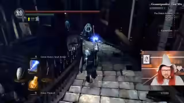 02:00:51Durch den Schlüssel von Mr. Julia wird die Tür geöffnet und der Magielehrer befreit. Wenn man kein Mage ist, kann man von einer Leiche das komplette Starter-Set vom Mage bekommen. Das Tor bei der Brücke, wo der Drache chillt, wird geöffnet. Es werden Spells gekauft, um den Start des Runs zu ebnen. Der Drache wird diesmal nicht getötet, da er den falschen Ring fallen lässt. Das Gras-Crest-Sheet gibt erhöhtes Stamina Recovery. Es wird kein Farming betrieben, da nicht genug Soll Eros vorhanden sind. Nach dem Tod wird ein Titanic-Chart gefunden, der aber nicht benötigt wird. Es wurde Dark Souls 3 gespeedrunt und auf der Gamescom LAN 2024 live gezeigt. Strikes werden wie Payback-Punkte gesammelt. Der Archer wird stehen gelassen, da er nicht gefarmt wird. Es wird überlegt, ob gelevelt wird. Es werden die Spells vom Magielehrer gekauft: Great Soul Arrow und normaler Soul Arrow. Als nächstes soll der Taurus besiegt werden. Es wird kommentiert, dass man gleich den Spell ausrüsten soll. Es gibt eine Begrenzung, wann der Run fertig sein muss, spätestens morgen um 23.59 Uhr. Der Titanite Demon wird gemacht und ein Strat dafür angewendet.