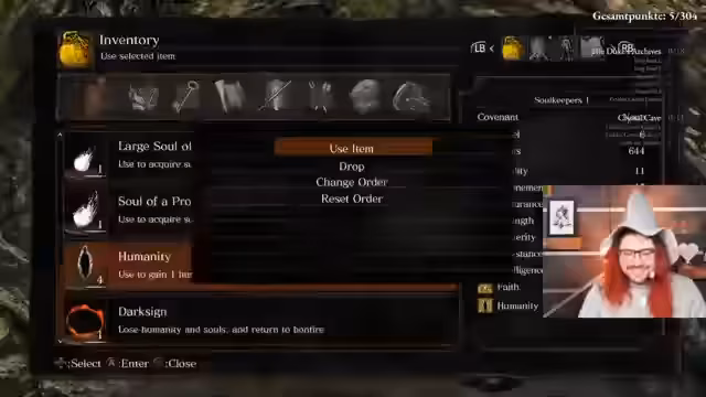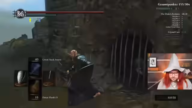 04:13:35Der Streamer erklärt das Soulkeepers-Event, bei dem Streamer in einem No-Death-Run Punkte sammeln können. Minibosse geben drei Punkte, Bosse geben fünf Punkte, und das Ziel ist, bis zu 304 Punkte zu erreichen. Das Event umfasst mehrere Spiele (Dark Souls 1, 2 und 3) und findet über mehrere Wochen statt. Es gibt einen Wanderpokal für den Gesamtsieger des Events. Der Streamer erwähnt, dass es einige Einschränkungen und verbotene Cheeses gibt, um die Spannung zu wahren.