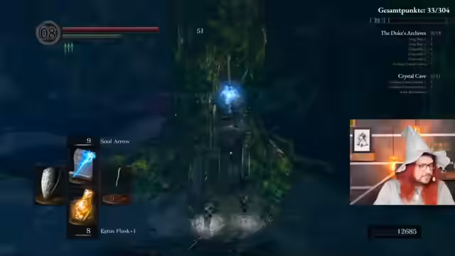 06:32:37Der Streamer befreit die Jungfrauen und erwähnt, dass sie Miracles droppen. Hier ist auch Logan eingesperrt, den der Streamer befreien will. Deswegen wird er jetzt eine Weile nicht an dem Bonfire rasten, sondern versuchen, komplett durch die Archive zu kommen. Er will alles clearn, damit er nicht nochmal alles clearn muss. Es sind noch einige Gegner vor ihm, vor allem zwei Channeler, die gefährlich sind, aber die er vielleicht mit seinem Power Spell one-hitten kann. Er überlegt kurz, ob er sich doch hinsetzen soll, um beide Channeler rauszunehmen. Er will den hier rausnehmen. Hier sieht man, wie die Pfeile holmen. Er will 10 von den Crystal Boys hier mit rausnehmen. Er muss jetzt schnell den Chandler one-shotten. Er nimmt die Gegner schnell raus, was gut ist. Er geht Step by Step vor. Er visiert nicht an. Er zieht den Archer raus. Er wurde vom Chandler gehittet. Er will hier nicht zweimal durch müssen und alles clearn müssen, weil die Chandler respawnen und nur beim ersten Mal Punkte geben. Er dreht die Brücke. Er erklärt, wie man die Brücken dreht. Er glaubt, dass da hinten noch ein Archer ist. Er lutscht das. Er will da drauf. Hier ist ein Shortcut auf die rechte Seite, wo es zum Boss geht. Er fragt sich, wie schlimm es über dem Bonfire da oben aussieht. Er hat gleich noch den Schlüssel. Er kriegt den Schlüssel von der Mimik oder aus einer Truhe. Hier sind viele Truhen. Hier kriegt er die Robe vom Channeler. Hier ist noch eine Mimik, die er jetzt nicht macht, weil er nicht so viel Spell hat. Er fragt sich, ob es hier irgendwo noch Gegner gibt. Da hinten ist ein Archer, da kommt ihm einer entgegen. Er schießt den lieber schnell ab. Er schießt sich die ganze Zeit in den Rücken. Er kann links den Archer one-hitten und hier zwei Shield Boys kaputt machen. Er muss jetzt beide hitten. Er hat keine Charges mehr. Das Anwesen hier ist schrecklich gerade. Es wird automatisch abvisiert. Er hofft, dass hier keiner mehr auf der Treppe ist. Er macht einen langen Walk zurück, um alles zu clearn. Er will zurück zur Zelle, um ihn freizulassen. Er hat das schon mal mit dem Reset dazwischen gemacht und es war furchtbar. Er ist auf dem Weg zurück gestorben. Er hat keinen Bogen, weil er keine Stats dafür hat.