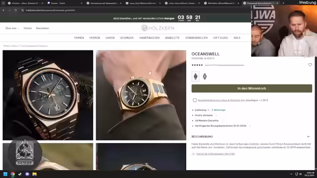 04:08:06Es erfolgt eine Ankündigung der Partnerschaft mit dem Unternehmen Holzkern, das Uhren, Schmuck und Accessoires anbietet. Es wird ein 15% Rabatt mit dem Code 'bonjwa' beworben. Besonders hervorgehoben wird die Zusage des Unternehmens, Bestellungen vor dem 21. Dezember garantiert bis Heiligabend zu liefern. Für Kunden in Wien entfallen sogar die Versandkosten komplett.