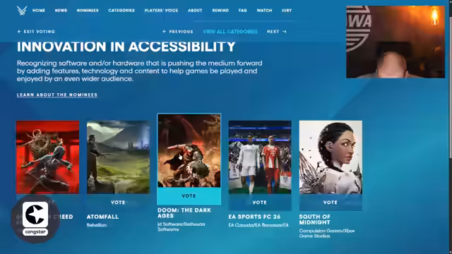 01:11:00Der Streamer durchgeht schnell weitere Game-Awards-Kategorien. Für 'Best Mobile Game' und 'Best VR/AR' ist er nicht informiert und überspringt diese. Bei 'Best Action Game' und 'Best Action/Adventure' wählt er 'Battlefield' und 'Ghost of Yote'. Für 'Best RPG' bevorzugt er 'Kingdom Come Deliverance 2' und bei 'Best Family Game' 'Spit Fiction'. Er endet mit einer Kritik an 'Civilization VII' und dessen Zeitsprüngen.