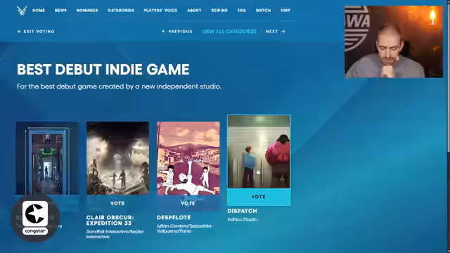 00:51:47Der Streamer spielt wieder 'Kingdom Come Deliverance 2' und lobt es als sehr gutes Spiel, das für Game of the Year nominiert ist. Er durchforstet die Nominierungen der Game Awards 2025 und erklärt seine Wahl für verschiedene Kategorien. Dabei unterstützt er hauptsächlich 'Claire Obscure' und 'Kingdom Come Deliverance 2', während er bei anderen Kategorien wie 'Best Performance' auf Schauspieler wie Ben Star und Charlie Cox verweist.