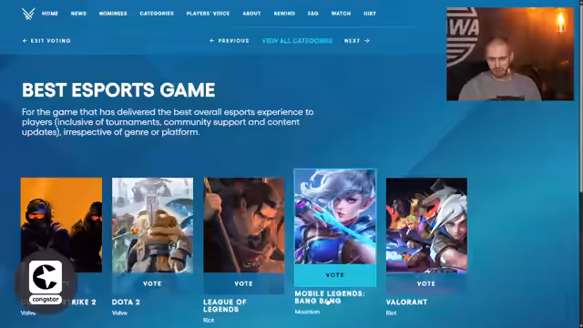 01:17:32Der Diskutant nimmt an den Game Awards teil und diskutiert die Kategorien. Bei Best Esports Game werden Valorant und League of Legends als Optionen erwogen, während Best Esports Athlete für Cho-V, Jung-Yi-Hun (League of Legends) votet. Für Best Esports Team wird NRG genannt, aber Gen.G und Team Vitality ebenfalls diskutiert. Bei Player's Voice entscheidet er sich für Claire Obscure gegen Genshin Impact, das er als überbewertet und nicht seinem Geschmack entsprechend kritisiert. Die Abstimmung wird als kulturpolitisch wichtig bezeichnet.