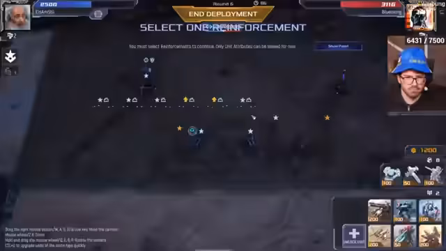08:07:39In den folgenden Runden von Mechabellum wird eine umstrittene Gegner-Kombo aus Typhoons und Panzerplatten identifiziert, die sehr effektiv ist. Der Streamer reagiert, indem er mehr Anti-Luft-Einheiten wie Fotos und Schilder einsetzt. Dennoch führt ein Fehler in der Platzierung seiner Festungsanlagen zum Verlust mehrerer Runden. Die Analyse der Niederlagen offenbart Defizite in der richtigen Reaktion auf bestimmte Einheiten und die Notwendigkeit, mehr kleine Einheiten zu bauen, um gegnerische Angriffe effektiver zu blockieren.
