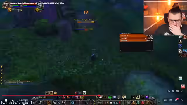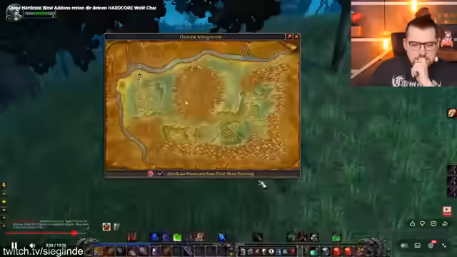 10:35:17Der Streamer berichtet von einem beinahe-Todserlebnis beim Testen seiner Warlock-Hotkeys. Nachdem er seine Tastenbelegungen optimiert hatte, testete er in Todesacker (Westfall) an einem Wildschwein, das drei Level über ihm lag. Der Mob chargte sofort und reduzierte seine HP auf unter 20%. In Panik drückte er alle Tasten gleichzeitig und rettete sich knapp in eine Hütte. Er betonte, wie wichtig Erfahrung im Spielen ist, um solche Situationen zu erkennen – besonders während der Hardcore-Mode-Session, wo ein Tod endgültig ist.