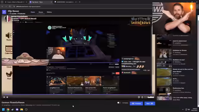 04:01:05Niklas startet den Stream nach einigen Tagen Pause und bittet Zuschauer, Clips von Todesszenen, Neuigkeiten oder besonderen Momenten in eine Warteschlange (Clip-Cue) zu laden. Er erwähnt einen speziellen Discord-Kanal der Community 'Sauerkraut', in dem Nutzer selbst Highlight-Clips einreichen können und plant, selbst ausgewählte Clips zu posten.