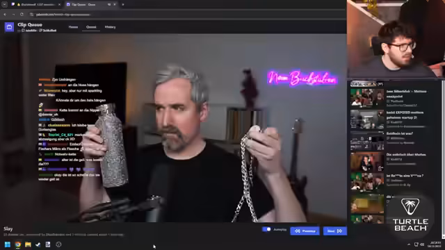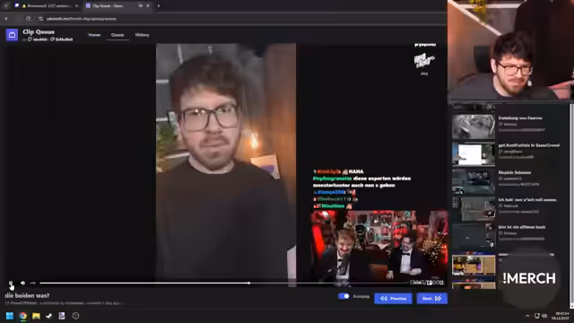 00:23:55Erstmals wird eine Clip-Queue aktiviert, um Community-Clips zu sammeln. Nach Login-Problemen wird die Queue gestartet, speziell für Clips von Sun Glitters vom Vortag. Hintergrund ist ein vorangegangener Konflikt, der genauer untersucht werden soll. Nutzer können Clips posten, die später analysiert werden. Die Queue bleibt zunächst offen, wird aber wahrscheinlich um 11 Uhr bearbeitet, während parallel ein Dungeon-Tierlist-Format geplant ist.