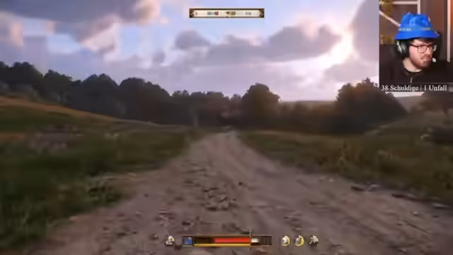 07:45:40Der Streamer trifft auf einen NPC und wettet auf einen Kampf gegen ihn. Es gibt Regeln: Nahkampf ist erlaubt, keine Bögen und Pfeile. Der Streamer verliert den Kampf, erhält aber seinen Einsatz zurück. Er stellt fest, dass eine Karawane vorbeizieht und er angeschlagen ist. Er vermisst sein Pferd und vermutet, dass der Kampf eine Ablenkung war, um es zu stehlen. Der Streamer isst etwas, um seine Gesundheit wiederherzustellen. Er beobachtet eine Schlägerei zwischen anderen NPCs und kommentiert die Kampffähigkeiten des blonden Kämpfers. Der Streamer isst Suppe und versucht, sich auszuruhen, bevor er seine Reise fortsetzt, um den Maibaumkranz abzugeben.