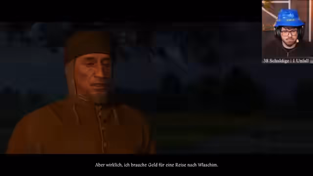 08:27:49Der Streamer plant sich zu waschen und ein Pferd zu besorgen, um den Mordfall in Tachau zu untersuchen. Er wäscht sich und bemerkt, dass ihm der Hammer ausgerutscht ist. Er sucht nach Essen und trifft auf einen unheimlichen Mann. Der Streamer beschließt, bis zum Abend zu warten. Er stiehlt einen Hahn und ein Pferd. Auf dem Weg nach Vansemin wird er von einem Mann angehalten, der Geld für sein Pferd verlangt. Der Streamer gibt ihm das Geld, aber der Mann rennt weg und stiehlt sein Pferd. Der Streamer versucht, sein Geld zurückzubekommen, wird aber von dem Mann angegriffen. Er tötet den Mann und nimmt sein Geld zurück.