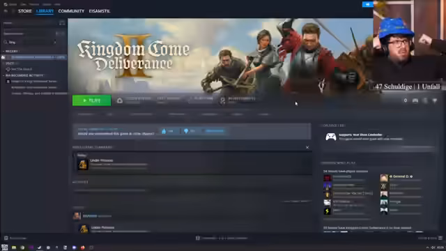 07:21:57Ein Raid von Pete Smeet trifft ein, während der Streamer Kingdom Come Deliverance spielt. Er erklärt den neuen Zuschauern die aktuelle Situation: Er ist auf der Suche nach dem Serienmörder 'Pest von Böhmen' und untersucht einen Tatort. Nach der Autopsie eines Opfers, inklusive Aneignung einer 'Stahlhirnhaube', desinfiziert er sich innerlich mit einem Bier. Er kommentiert die Möglichkeit, Leichen in einen Brunnen zu werfen und betont seine eigene Unschuld. Der Streamer setzt seine Ermittlungen fort, findet weitere Leichen und überlegt, was mit ihnen geschehen sein könnte. Er untersucht die Waffen der Wachen und nimmt einen Streitkolben an sich.