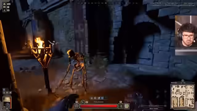 02:52:45Der Streamer entdeckt interaktive Objekte wie eine Schelle und einen Auto-Bot. Es werden verschiedene Methoden gezeigt, wie Türen aufbrochen werden können, was von speziellen Klassen-Perks wie beim Barbar (Zweihandwaffe) oder durch Zauber wie beim Sorcerer (Hellfire) möglich ist. Diese Mechanik ist besonders im PvP wichtig, um als Ausweg zu dienen. Es wird auch erwähnt, dass es Klassen wie den Fighter gibt, die Türen normalerweise mit der Hand aufmachen können.