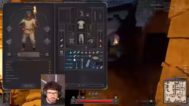 00:10:43Nachdem er einen Gegner besiegt hat, plündert Matteo dessen gesamte Ausrüstung. Er analysiert die gefundenen Gegenstände im Detail, rollt sie um bessere Stats zu erhalten und entscheidet, welche Teile er behält und welche er auf dem Markt verkauft. Items wie eine 'Geile Hose' mit 'Move Speed Bonus' werden bewundert und behalten, während andere Teile wie 'Trash Body' schnell wieder abgestoßen werden.