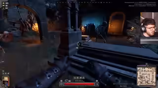 00:02:17Eine Wette wird im Chat inszeniert, bei der Matteo darauf wetten muss, den Raid zu überleben und mindestens einen Kill zu erzielen. Kurz darauf meldet das Killfeed den ersten Player-Kill, was er selbst auf sich bezieht. Seine Ausrüstung wird bewertet und optimiert, indem er Teile wie Ringe, Handschuhe und Hüte austauscht und rollt, um die Attribute wie Agilität und Stärke zu maximieren. Währenddessen ist ein kleiner Cleric im Raum, der freundlich ist, aber den Kampfverlauf beeinflusst.