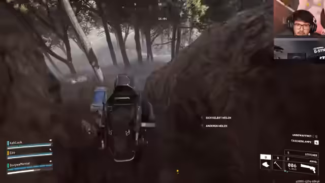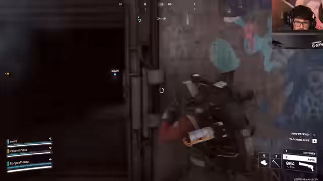 03:53:55Die Spieler starten in eine neue Runde und bemerken, dass sie einen ähnlichen Spawn wie zuvor haben. Sie stoßen auf feindliche Spieler in einem Raum, den sie zuvor gelootet hatten, was darauf hindeutet, dass jemand die Tür geschlossen haben muss. Es kommt zu einem intensiven Feuergefecht, bei dem die Spieler erfolgreich zwei Gegner ausschalten. Die automatische Heilfunktion eines Spielers mit 'Kampfmarke 2' wird als vorteilhaft erwähnt. Kurz darauf hören sie Geräusche einer Spinne und eines weiteren Teams. Ein weiterer Kampf entbrennt, bei dem ein Spieler niedergeschlagen wird. Die Schwierigkeit, beim Looten wehrlos zu sein, wird kritisiert, da der Bildschirm komplett verdeckt wird. Trotz der Niederlage versuchen die Spieler, die Ausrüstung des gefallenen Teammitglieds zu retten, was jedoch durch das feindliche Team erschwert wird.
