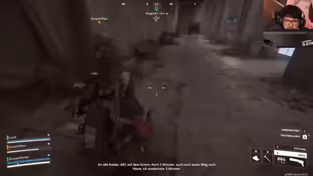 00:16:33Der Streamer bemerkt, dass der Titel des Streams falsch ist und bittet um Korrektur. Die Gruppe überlegt, einen Bereich erneut zu betreten, um zu looten oder zu kämpfen, da Schüsse zu hören sind. Sie entdecken eine Falle und vermuten, dass Gegner im Gebäude sind. Es wird diskutiert, wie lame es ist, dass Spieler an High-Loot-Spots campen und Fallen stellen, um Gegner zu eliminieren. Ein Spieler findet einen Bauplan für eine Bettina und betont dessen Wichtigkeit. Die Gruppe versucht, sich mit Loot vollzupacken und dann zu entkommen, um nicht wie zuvor zu lange an einem Ort zu verweilen und dann alles zu verlieren. Ein Alarm wird ausgelöst, und die Spieler müssen sich beeilen, um zu entkommen. Es wird eine Drohne gesichtet und ein Rocketeer kommt ebenfalls, was die Situation gefährlich macht. Trotz der Schwierigkeiten gelingt es der Gruppe, einen Exit zu erreichen und die Runde erfolgreich zu beenden, wobei ein Spieler einen wertvollen Blueprint erhalten hat.