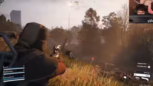01:04:05Die Spieler geraten in einen intensiven Kampf, bei dem sie einen Gegner ausschalten und anschließend einen weiteren. Ein Spieler wird dabei gedownt, kann aber wiederbelebt werden. Nach dem Gefecht diskutieren die Spieler über die Moral des Tötens anderer Spieler und ob sie ein schlechtes Gewissen haben, insbesondere wenn die Gegner kein wertvolles Equipment bei sich tragen. Es wird über das Recycling von Gegenständen gesprochen, um Platz im Inventar zu schaffen und nützliche Materialien zu gewinnen. Die Gruppe entscheidet sich, den Highground zu suchen, um eine bessere Übersicht zu erhalten und mögliche Feinde frühzeitig zu erkennen.