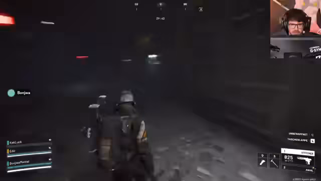 04:45:39Die Spieler positionieren sich strategisch, um auf herannahende Gegner vorbereitet zu sein. Eine Lasermine wird platziert, um die Treppe zu sichern, während die Geräusche von Schritten und Türen auf die Annäherung von Feinden hindeuten. Ein blaues Leuchten wird bemerkt, das möglicherweise von Wespen oder anderen Anomalien stammt. Die Gegner scheinen sich im Tunnel unter den Spielern zu befinden und versuchen, mit Granaten hochzuwerfen, um die Verteidigung zu durchbrechen. Es wird überlegt, ob die Gegner nach dem Zünden von Granaten den Rückzug antreten. Die Spieler beobachten die Bewegungen der Feinde und diskutieren über die beste Vorgehensweise, um einen Vorteil zu erzielen. Die Möglichkeit, Gegner von einer erhöhten Position aus zu überraschen, wird erörtert, wobei die Notwendigkeit betont wird, gedownte Gegner sofort zu eliminieren. Die Platzierung einer Lasermine wird als potenziell ungünstig erkannt, da sie die Gegner warnen könnte. Die Spieler entscheiden sich, die Gegner nicht zu verfolgen, da diese sich wahrscheinlich bereits zu einem Exit-Punkt bewegen.
