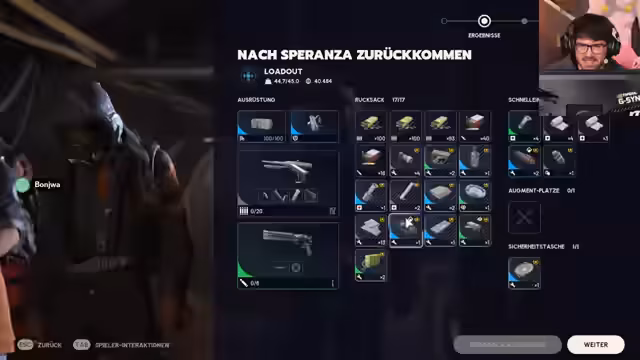 05:44:16Für die nächste Runde müssen die Spieler ihre Ausrüstung neu zusammenstellen, da ihnen die Waffen fehlen. Es wird besprochen, dass der Streamer eine Anvil-Waffe mitbringen soll, während ein anderer Spieler Munition beisteuert. Die Idee, einen Enterhaken in den Secure-Container zu legen, wird diskutiert, wobei die Frage nach dessen Mehrfachverwendbarkeit aufkommt. Es wird auch erwähnt, dass die 'Todesleiter' in der vorherigen Runde die Gegner in einen 'Death Jump' geführt hat, wodurch sie auf einem unerreichbaren Vordach landeten. Die Spieler stellen fest, dass sie pleite sind, nachdem sie ihr gesamtes Geld ausgegeben haben, und bereiten sich auf den nächsten Raid vor, indem sie Waffen und Geld austauschen.