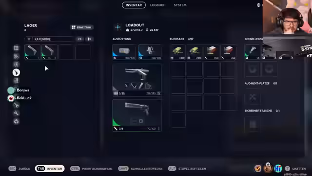 00:21:55Es wird über zukünftige Raids und die Roadmap des Spiels gesprochen, die neue Gegnertypen, eine neue Map und verschiedene Events wie Nacht-Raids und die Einführung der Queen als Boss-Minion vorsieht. Die Spieler diskutieren den hohen Wert von Saatgut, das gegen alles getauscht werden kann und vom eigenen Hahn gesammelt wird. Es wird geraten, Saatgut lieber gegen benötigte Teile einzutauschen, anstatt es zu verkaufen. Die Mechanik des Tauschens von Free-Loadouts gegen richtige Loadouts bei Händlern wird erklärt. Die Spieler tauschen sich über ihre Schwierigkeiten beim Loot-Management aus, da der Inventarplatz begrenzt ist und es schwer ist, im Eifer des Gefechts zu entscheiden, was wertvoll ist. Es wird der Tipp gegeben, Mats über die Werkbank zu verfolgen, um leichter zu erkennen, welche Ressourcen benötigt werden. Die Anvil wird als gute Langstreckenwaffe empfohlen, obwohl sie teuer ist. Ein Spieler entscheidet sich für ein Gratis-Loadout, da es ähnlich gut ist wie das eigene.