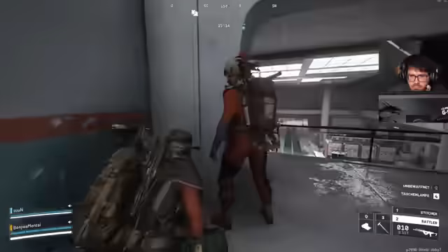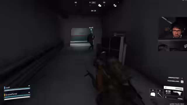 01:55:37Nachdem die Spieler ihr Inventar sortiert haben, überlegen sie, ob sie die Bastion angreifen oder zuerst die Medbay erkunden sollen. Sie entscheiden sich, einen kurzen Blick in die Medbay zu werfen, um sicherzustellen, dass keine Gegner von hinten kommen, während sie die Bastion angreifen. In der Medbay kommt es zu einem unerwarteten Kampf mit anderen Spielern. Die Gruppe eliminiert erfolgreich mehrere Gegner und sammelt deren Loot. Ein Spieler bemerkt, dass die Nades manchmal sehr weit fliegen und effektiv sind. Während des Lootens wird ein Spieler von einem Shredder angegriffen und eliminiert, was zu einer kurzen Panik führt. Die verbleibenden Spieler versuchen, den Shredder auszuschalten und den Loot des gefallenen Teammitglieds zu sichern. Es wird festgestellt, dass einer der besiegten Gegner eine Ferro 4 hatte, was auf gutes Gear bei den Gegnern hindeutet. Die Spieler müssen schnell handeln, um den Bereich zu sichern und weiteren Angriffen zu entgehen.