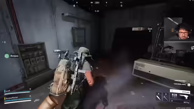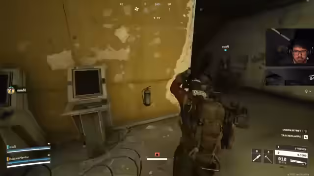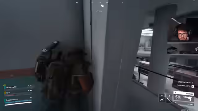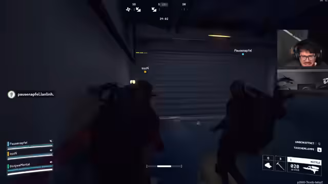 05:18:13Die Streamer geraten in ein intensives Gefecht, als sie auf zwei lila Items stoßen und Schüsse hören. Sie stellen fest, dass die Tür noch geschlossen ist und es heftige Schießereien gibt. Nach dem Ausschalten eines Gegners bemerken sie einen weiteren Toten und werden von einem Gegner hinter einer Tür überrascht. Die Kommunikation ist hektisch, als sie versuchen, sich gegenseitig über die Positionen der Gegner zu informieren und eine Ködergranate eingesetzt wird. Ein unerwarteter Push eines Gegners führt zu einer gefährlichen Situation, und es wird die Anwesenheit einer "Spinne" erwähnt. Die Streamer diskutieren, ob ein gedownteter Gegner in einen bestimmten Bereich geflüchtet ist. Sie entscheiden sich, in den Turm zurückzukehren, da sie ein neues Team vermuten, werden jedoch kurz darauf von einem anderen Team gepusht. Trotz hohem Schaden, den sie verursachen, und dem Einsatz einer Granate, werden sie von einem dritten Team überrascht und eliminiert, was als "Third-Party-Heaven" bezeichnet wird.