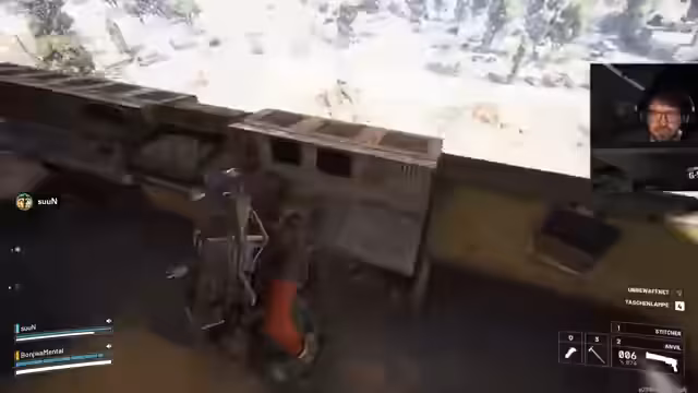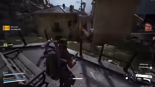 06:16:15Die Streamer äußern den Wunsch, das Spiel einmal aus der Ego-Perspektive zu erleben, da sie glauben, dass dies das Spielerlebnis noch intensiver machen würde, insbesondere im Kampf gegen Drohnen und "Rocketeer", die aus dieser Perspektive bedrohlicher wirken würden. Sie planen, am nächsten Tag ein paar "Raids auf Stellamontes" zu machen, um mehr Action zu erleben. Es wird erwähnt, dass es bereits halb sieben Uhr morgens ist. Sie reflektieren über eine ungewöhnliche Runde, in der sie die ganze Zeit in einem Tower verbrachten und von zwei Teams gepusht wurden. Sie scherzen darüber, was der Gegner gedacht haben muss, als er sich in dieser Situation befand. Ein Streamer schafft es, schnell auf ein Dach zu gelangen, während der andere sich auf den Weg zum Bäcker macht. Es wird über Schlafzeiten und den Beginn des Tages gesprochen. Sie erhalten einen "Smoky doki" für neun Monate und begrüßen ihn. Es wird ein guter Loadout mit "Kettel" und "Stitcher" und einer Schockmine erwähnt, und sie hoffen auf einen guten Spawn.