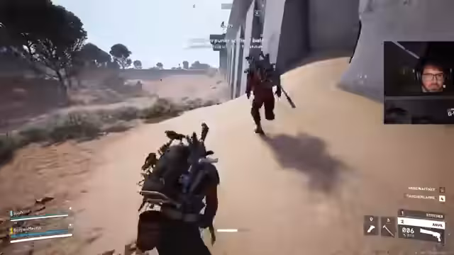 05:47:50Die Streamer entscheiden sich für einen Rückzug, da die Situation zu gefährlich wird und sie befürchten, von hinten angegriffen zu werden. Während des Rückzugs werden sie beschossen, und es ist unklar, woher die Schüsse kommen. Sie versuchen, sich von der "Box" zu lösen, an der sie feststecken, und disengagieren sich. Es wird überlegt, in einem Versteck zu bleiben, aber die Gegner haben bereits eine bessere Position. Sie erwägen, über den Fluss zu laufen, um die Gegner zu umgehen, aber es besteht die Gefahr, dass diese bereits ihre Position gewechselt haben. Die Streamer versuchen, sich so viel wie möglich zu bewegen, um ihre Position zu verschleiern. Sie befürchten, dass die Gegner den Highground eingenommen haben, wo sie zuvor waren, oder dass sie nur looten wollen. Die Situation spitzt sich zu, als sie erneut beschossen werden und erkennen, dass die Gegner oben sind. Sie versuchen, durch einen Bereich zu fliehen, werden aber von einer "Hornisse" und einem "Rocketeer" bedrängt. Sie haben nur noch zwei Minuten Zeit und müssen schnell handeln.