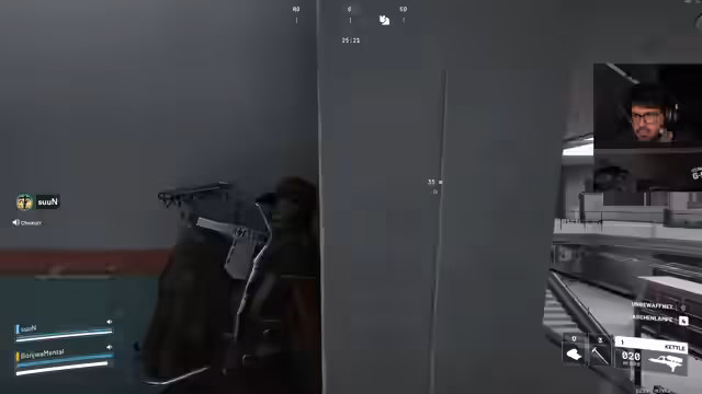 06:20:58Die Streamer haben einen frühen Spawn und bemerken sofort ein anderes Team. Sie versuchen, die Bewegungen der Gegner zu verfolgen, die sich in Richtung der Sensoren bewegen. Es wird festgestellt, dass es sich um zwei Gegner handelt, die einen Standard-Loadout zu haben scheinen. Ein Gegner hockt, während das andere Team sich nähert. Die Streamer überlegen, wie sie die Gegner umgehen können, die bereits in den Bereich eingedrungen sind. Eine Ködergranate wird eingesetzt, um einen "Shredder" abzulenken, aber dieser bleibt hartnäckig in Position. Die Streamer haben Schwierigkeiten, am "Shredder" vorbeizukommen, der ihre Bewegungen blockiert. Sie bemerken, dass die Gegner Granaten auf sie werfen und einer von ihnen getroffen wird. Der "Shredder" greift die Gegner an, während die Streamer versuchen, ihre Mine wieder aufzuheben, die jedoch unerreichbar ist. Sie vermuten, dass die Gegner im Gang sind und planen, den "Shredder" zu nutzen, um sie anzugreifen.