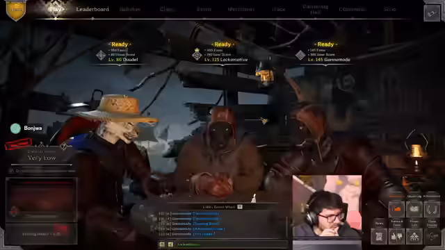 05:36:40In einer Squire-Lobby konzentrieren sich die Spieler auf PvP-Engagements. Sie analysieren ein Team aus Wizard, Ranger und Barde, diskutieren Flankierungsmanöver und Positionierung (z. B. Türhalten, Schadensdruck durch Pfeile). Nachdem sie einen Headshot auf einen Gegner landen, planen sie einen erneuten Raid, bemerken aber interne Kommunikationsprobleme. Die Gruppe erkennt, dass impulsives Vorgehen in Räumen oft zu Niederlagen führt und beschließt, strategischer zu rotieren.
