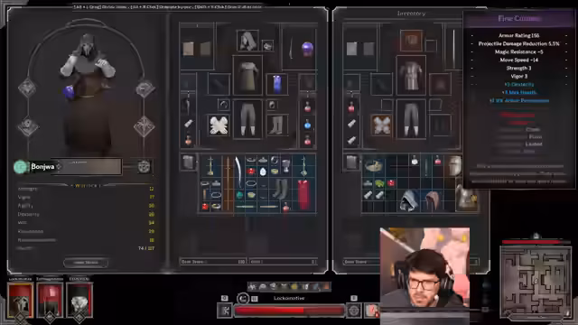 05:25:00Nach einem Kampf gegen einen Boss mit ungewöhnlichen Attacken („Halbschwanz-Jump-Move“) folgt eine Reflexion über die aktuelle Spiel-Meta. Der Gruppe wird klar, dass Wizards dominierten und traditionelle Klassen wie Slayer-Fighter an Bedeutung verloren haben. Sie diskutieren Anpassungen, etwa den Wechsel zu Rogue oder Barb, und optimieren ihr Gear. Ein Fokus liegt auf Magic Resistance (35%) und dem Nutzen von Runestone-Gloss für defensive Werte. Die Gruppe plant High-Roller-Lobbies, um bessere Items zu farmen.