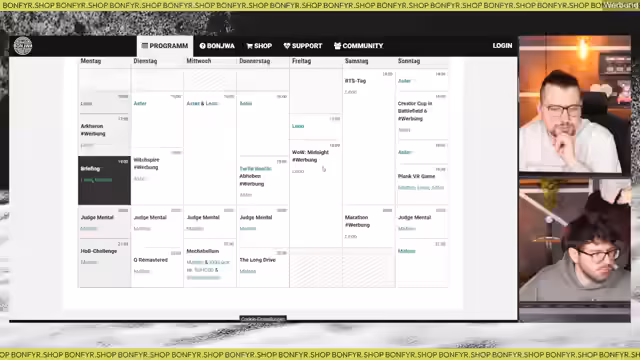 03:55:39Der Streamer stellt seine aktuellen Partner vor und gibt exklusive Rabatte bekannt. Bei Snogs können Zuschauer mit dem Code 'Bonjwa20' 20% auf Unterwäsche und Socken sparen, wobei eine Anti-Loch-Garantie besteht. Bei AXA und Bonfire gibt es ebenfalls Merchandise-Artikel, wobei der Bonfire-Hoodie und andere Kleidungsstücke noch in vielen Größen verfügbar sind. Zudem wird Prep My Meal als Partner vorgestellt, mit dem Zuschauer 5% sparen können, und es wird die Eignung der Mahlzeiten für den erwähnt. Kongstars wird ebenfalls als Partner beworben, mit dem Ziel, mehr Interaktion über den Discord-Server zu ermöglichen.