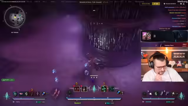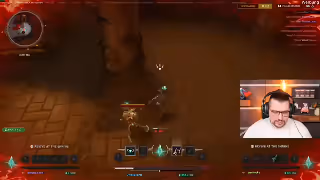 03:02:00Der erste Kreis beginnt, und es ist eine große Menge an Gegnern (Packs) vorhanden. Ein Spieler lootet eine Legendary Chest, bevor der Streamer sie erreichen kann. Ein Gegner befindet sich in Low-HP hat aber kein Schild mehr. Es wird versucht, einen Gegner namens Vaton zu eliminieren, um dessen interessante Waffe zu erhalten. Man sammelt schnell Gold, um etwas kaufen zu können, findet aber nichts Passendes.